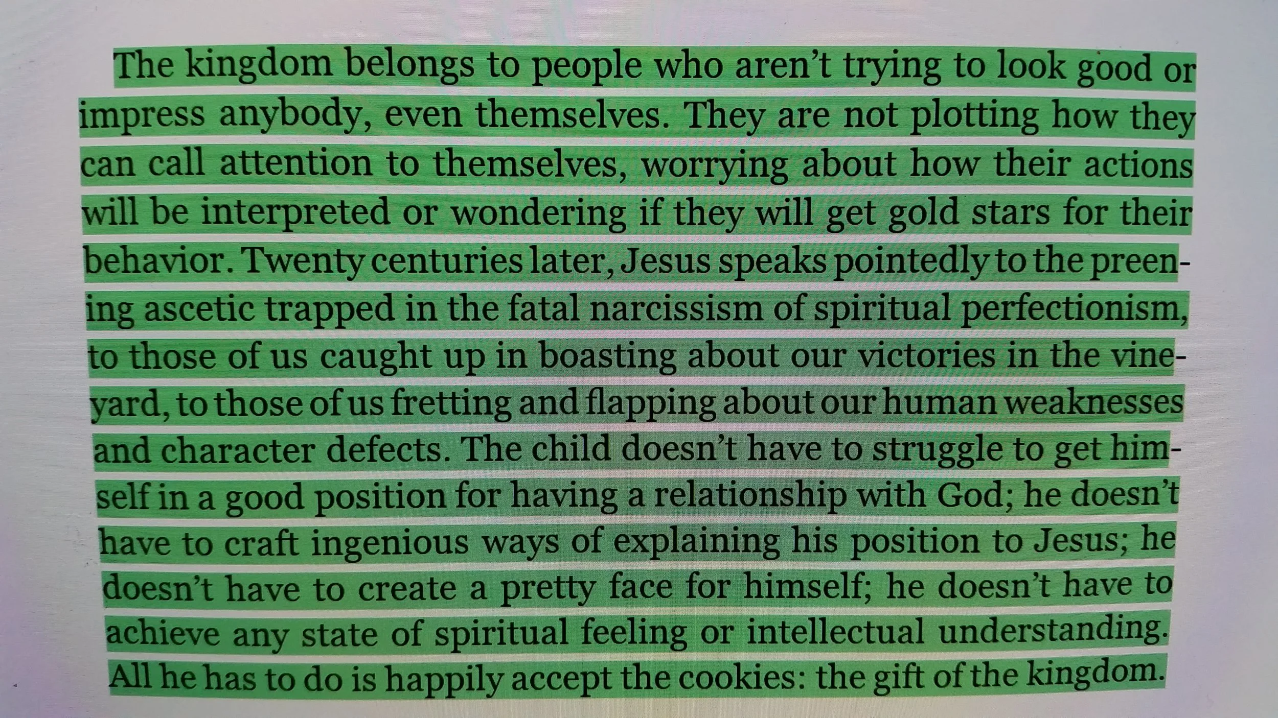 This idea that children are recipients of the Kingdom of God – another way of expressing eternal life and shalom and knowing God – initrigued me. Brennan Manning gave us a masterpiece about the love of God in his book, The Ragamuffin Gospel. As I was thinking about this week’s teaching, I was reminded of this quote from his book:
